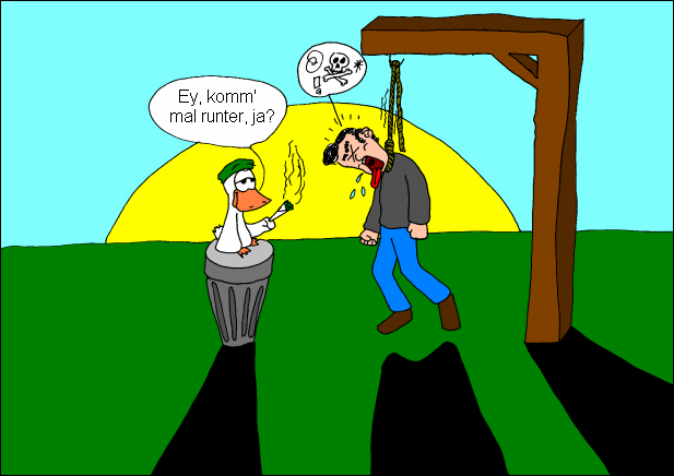 Des Weiteren hat der besuchende Homo Sapiens die IP-Adresse seines eigenen (oder die eines fremdbesessenen) Gerätes an meinen Webspace übermittelt und dadurch zur Enthropie beigetragen. Für daraus resultierende Schäden bin ich nur dann verantwortlich, wenn ich es auch wirklich bin - nicht dann, wenn es ihm in den Kram passt (es sei denn, es passt ihm gerade dann in den Kram, wenn ich wirklich verantwortlich bin - dann decken sich beide Fälle und ich übernehme die Verantwortung).